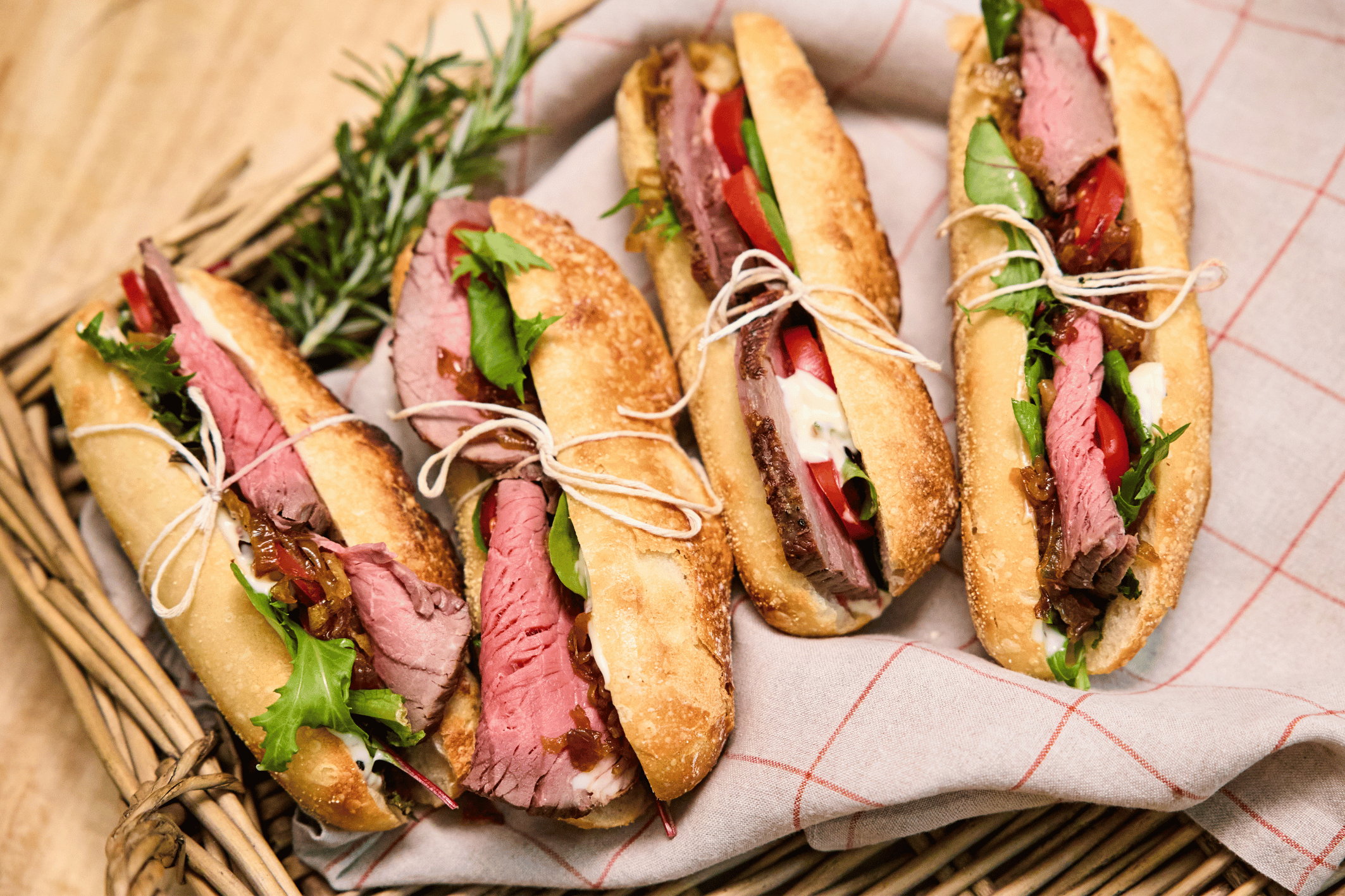 Roast Beef Picnic Baguettes - tied with kitchen twine